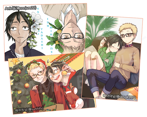 해히히님, 히마야님, Ar.in님의 일러스트로 구성된 츠키야마 사진(4*6inch) 3종 세트를 드립니다.